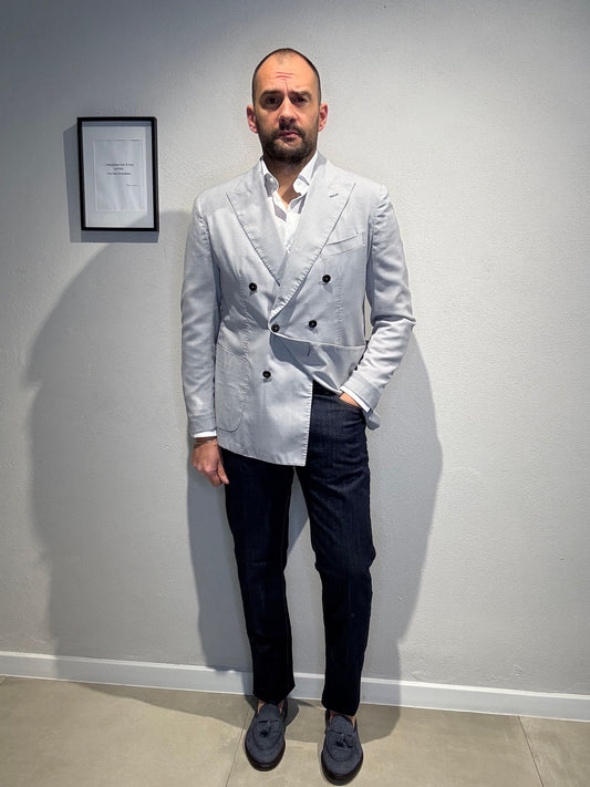 G3327/DOUBLEWASHED/GHIACCIO - GIACCA DOPPIO PETTO - MARTIN ZELO