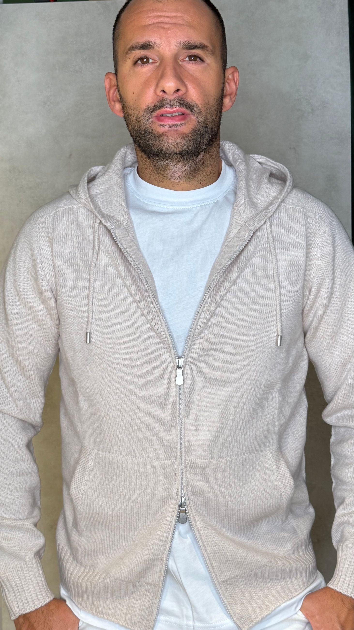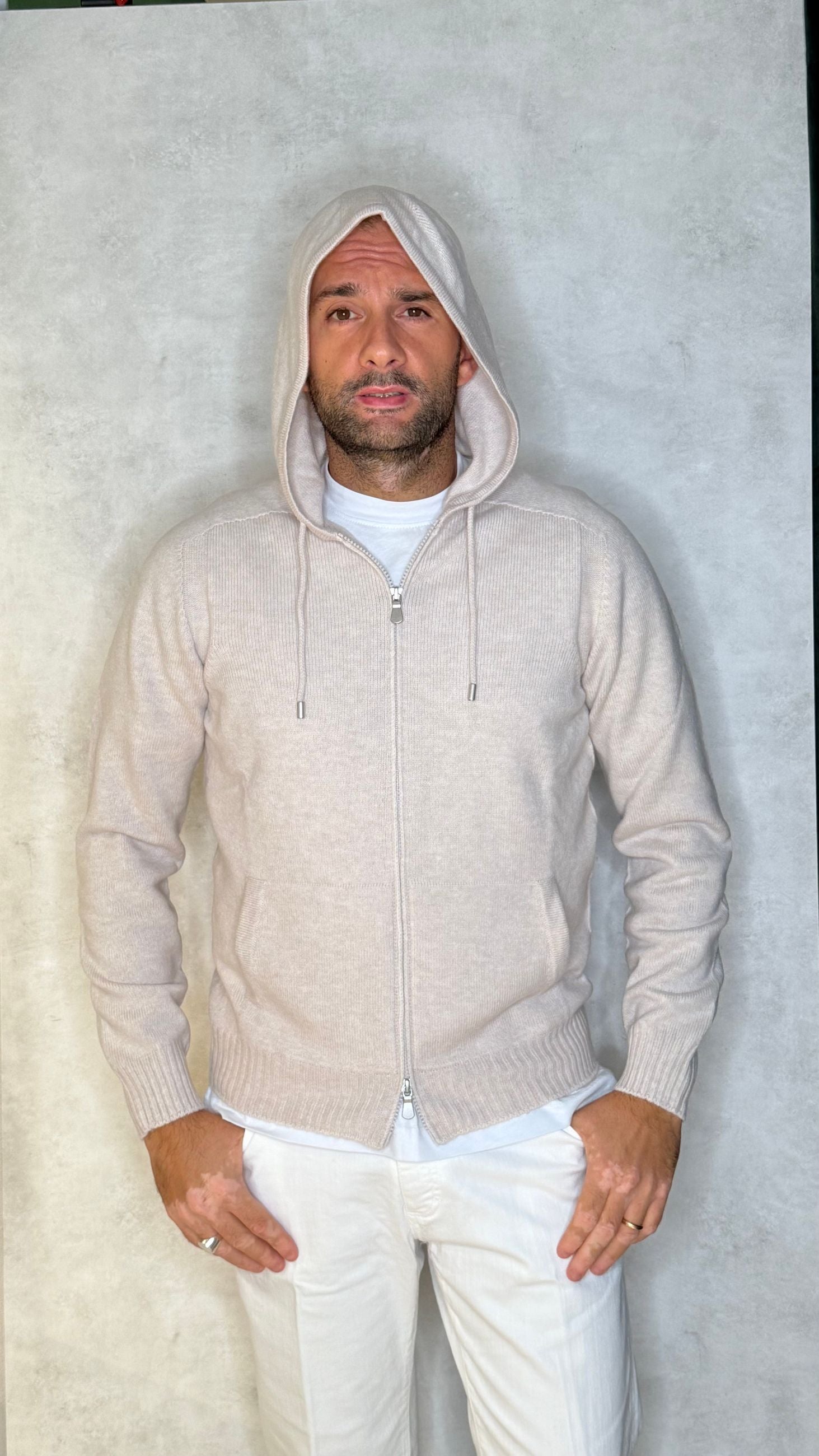 PULLOVER CON CAPPUCCIO , ZIP CON DOPPIO CURSORE