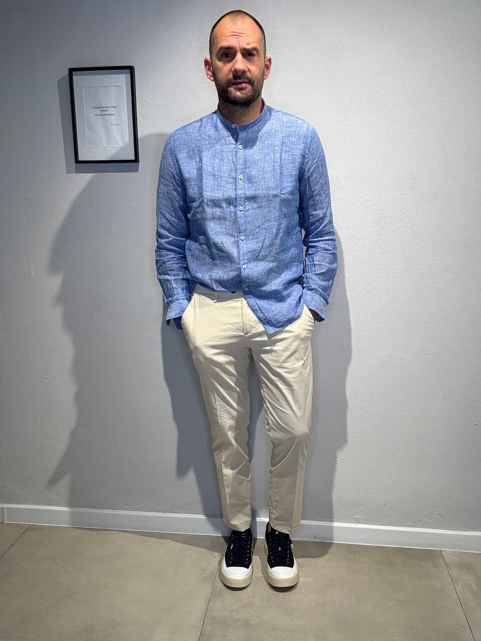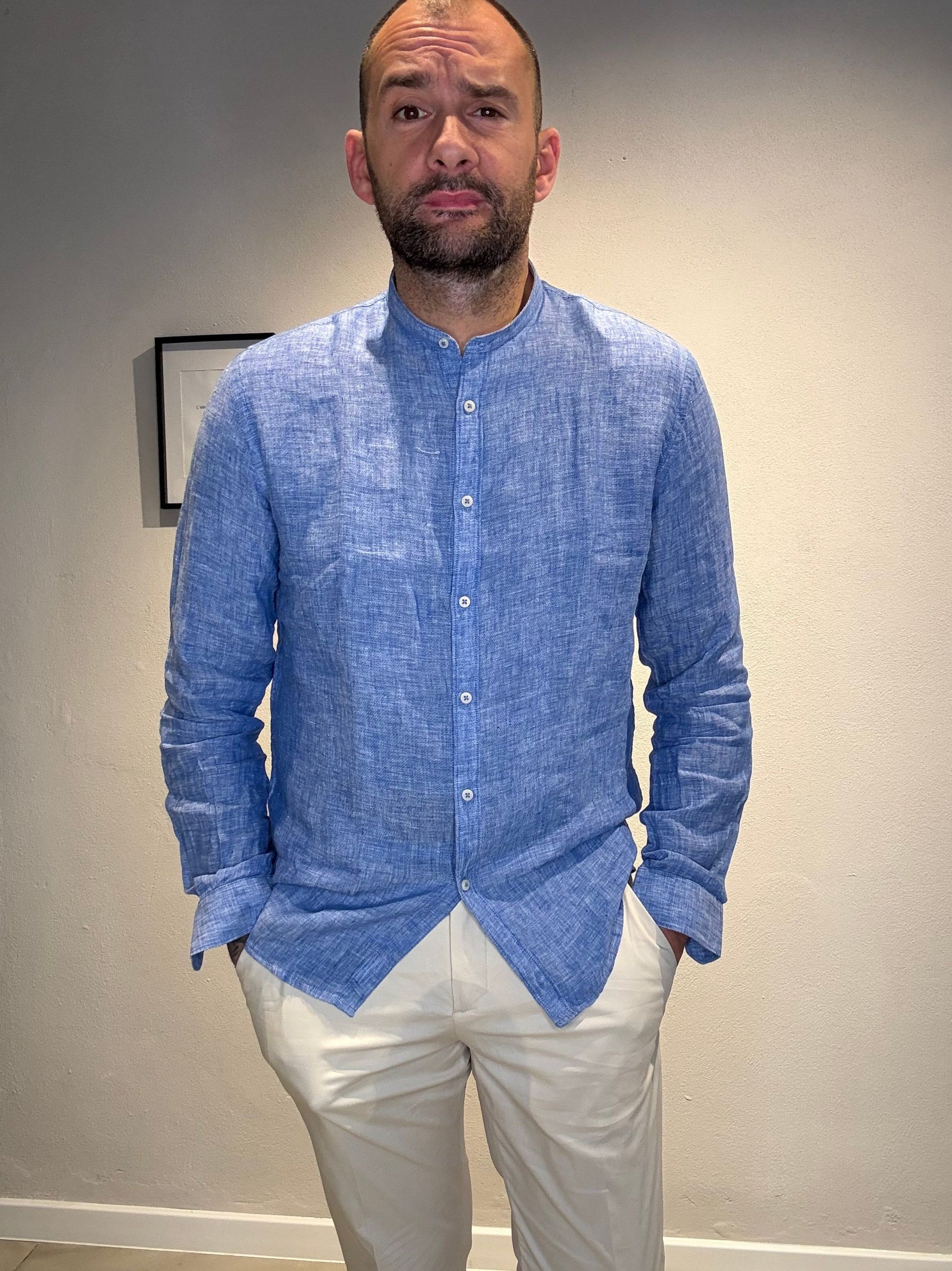CAMICIA M/L CON COLLO COREANO IN LINO